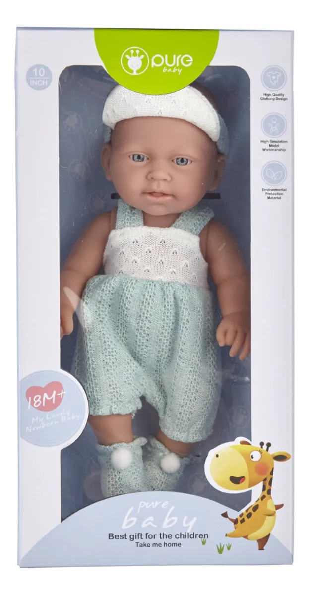 Presentamos el encantador Muñeco Bebé Pure Baby con Ropa de Verano. Este muñeco realista de 10 pulgadas está diseñado para acompañar a los más pequeños en momentos de juego imaginativo y educativo.