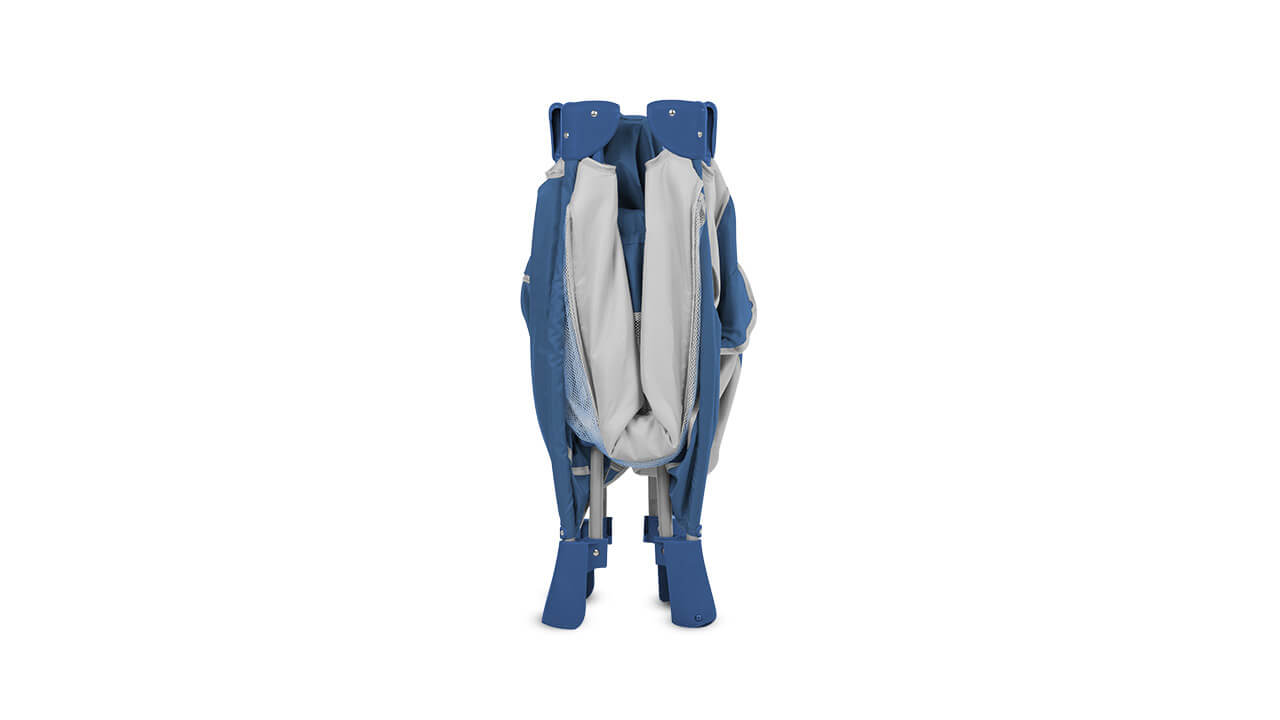 La practicuna Eco se pliega de forma ultra compacta y cuenta con un práctico bolso para guardarla junto con sus accesorios y transportarla a cualquier lugar, por lo que el bebé puede dormir siempre en su propia cuna.