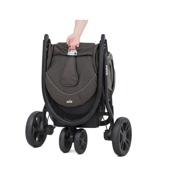 El bloqueo del plegado automático mantiene la silla de paseo convertida en un paquete compacto que cabe en espacios reducidos