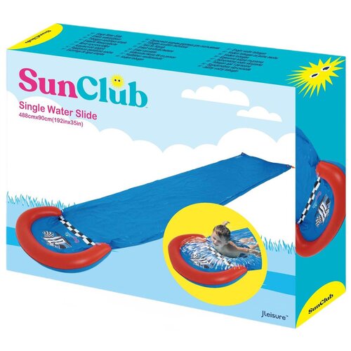 El tobogán acuático Sun Club 51234 es la solución perfecta para niños activos que aman los juegos acuáticos. El fácil montaje permite un rápido despliegue en el jardín. Cuando se conecta a una manguera de jardín, el rociador de agua proporciona un deslizamiento excelente. La puerta de entrada integrada en forma de elefante con chorros de agua fomenta además el juego. Las dimensiones del tobogán son 488 x 90 cm y su peso neto es de 1.191 kg. La marca Sun Club, conocida por sus productos de alta calidad para la recreación acuática, garantiza una diversión duradera y segura. Instale el tobogán en un área previamente despejada y disfrute de la diversión del verano.