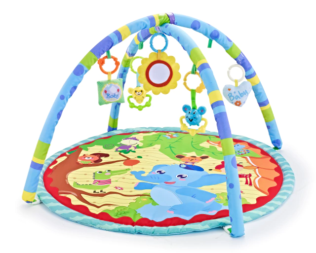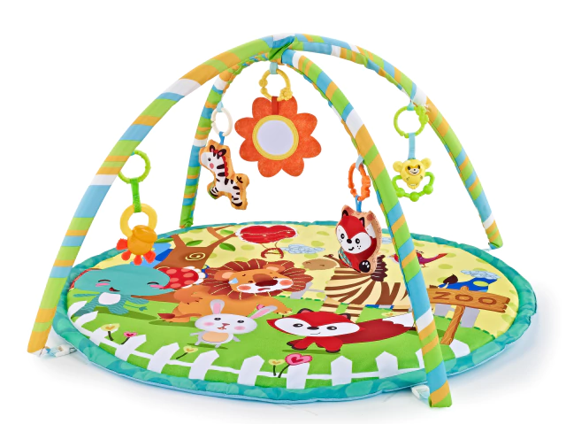 Su material es suave y flexible, siendo de gran ayuda para acompañar su desarrollo físico y motriz manteniendo las condiciones de seguridad necesarias. Al avanzar su crecimiento, sus sentidos y habilidades van madurando, lo que les permite comenzar a descubrir los elementos incentivando la creatividad, concentración y la exploración del entorno. Incluye 5 juguetes colgantes para que se divierta y entretenga mientras juega con los mismos.