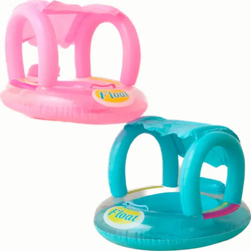 Inflable Salvavidas Flotador Infantil Bote Con Toldo 70cm Celeste/Rosa