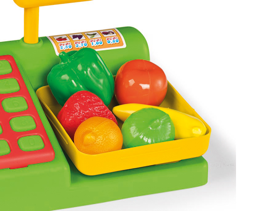 ¡Mercado completo para jugar con amigos! Elija las frutas, verduras, pese todo en la balanza. ¡Pon las cajas en la canasta para realizar una compra completa!